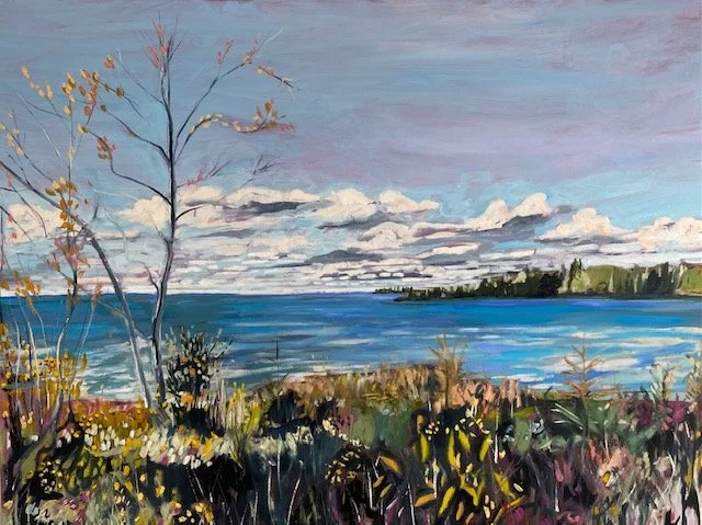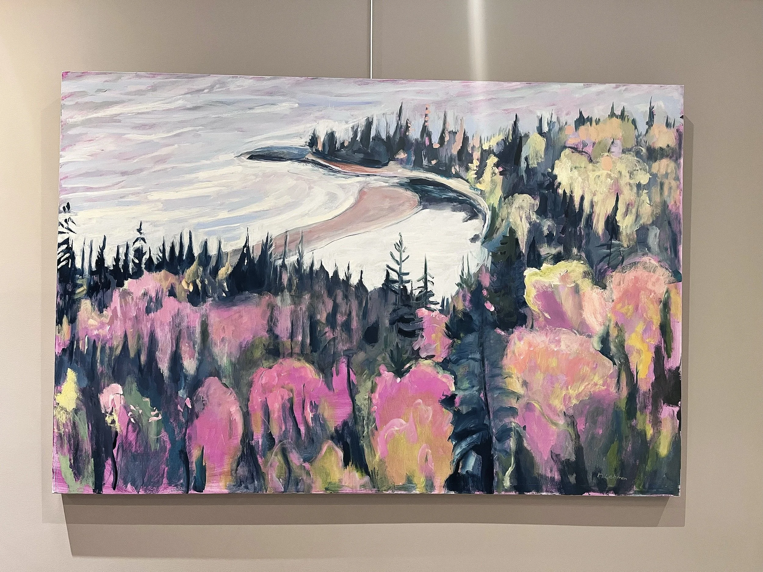 landscape, capturing the essence of Northern Ontario and Lake Superior with depictions of water, forest